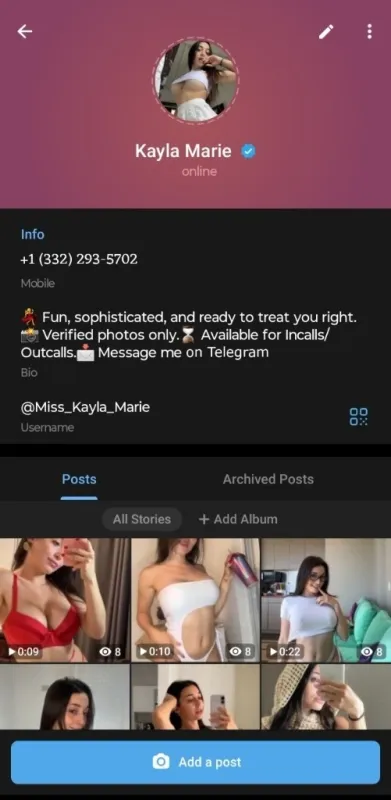 Hey love 💕 new in town and ready to make your time unforgettable 😈 Relaxed, fun, and never rushed. • ✨ Available for you: • Incall & Outcall • FaceTime shows • Exclusive content • GFE, DATY, Bare, Greek • BBBJ, CIM • Massage, Kissing, Cuddling • Roleplay / Fantasy • Custom requests welcomed (within limits) • • Text location + time if serious 💋 - Message me on Telegram @Miss_Kayla_Marie